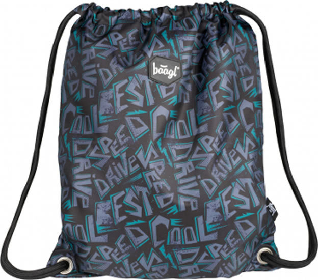 • Sáček na cvičky nebo přezůvky s cool motivem z pevného omyvatelného materiálu • Zdrhování pomocí pevných tkanic, které zároveň umožňují nošení na zádech