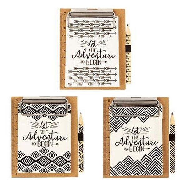 Módní psací sada z kraftového papíru ve skvělém designu. Deska s integrovaným pravítkem (10 cm) obsahuje blok v lepicí vazbě s 50 listy kvalitního papíru, stejně jako dřevěnou tužku připevněnou k deskám gumičkou.