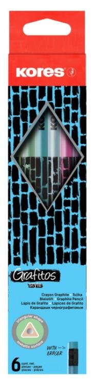 Kores Cracked Style Sada trojhranných tužek 2 HB 6 ks