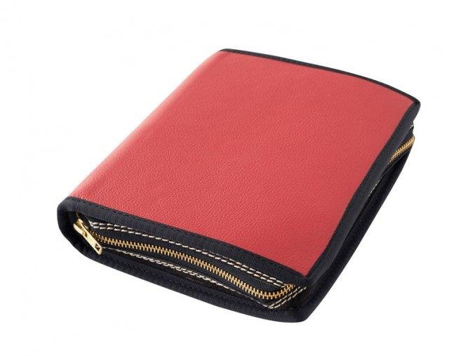 Kožený obal na knihu se zipem - kůže červená