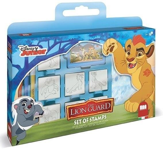 Pieczątki na licencji Króla Lwa. W skład zestawu wchodzą: 7 pieczątek, 3 pisaki, 1 poduszeczka do tuszu i 1 notatnik.