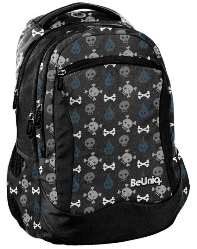 Plecak szkolny. Trzy pojemne komory, kieszeń przednia z organizerem, 2 boczne kieszenie z siatki+materiał. Wzmocnione profilowane plecy, miękkie wygodne szelki. Wzmocniony i usztywniony spód. Wygodny uchwyt do przenoszenia i uszko do powieszenia. W komorze głównej przegroda (na laptop), w drugiej komorze organizer z kieszenią na zamek, uchwyt na klucze. Elementy odblaskowe dla większego bezpieczeństwa. Wykonany z materiału wodoodpornego.