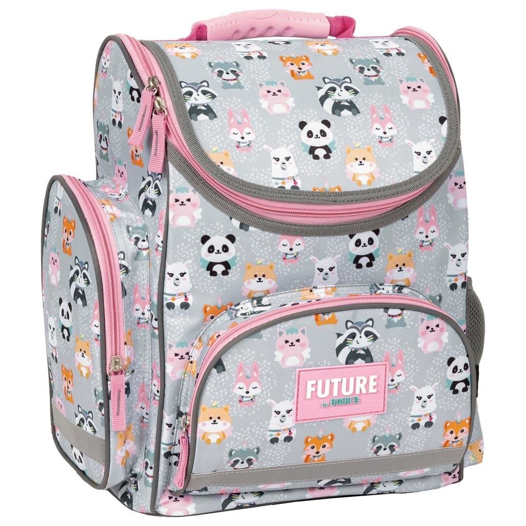 Funkcjonalny, lekki tornister szkolny. Pokrywa tornistra zamykana na zamek, wewnątrz etykieta na dane adresowe. Ergonomiczny tył, miękkie wyściełane szelki, trzy kieszenie zewnętrzne. Dno wykonane z wodoodpornego tworzywa zabezpieczającego przed zabrudzeniem, zamakaniem.