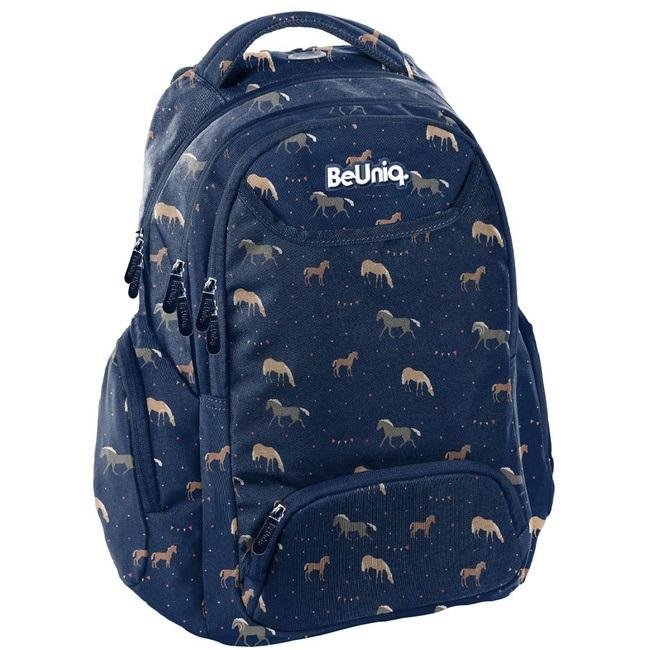 Plecak szkolny. Trzy pojemne komory, kieszeń przednia z organizerem, 2 boczne kieszenie z siatki + materiał. Wzmocnione profilowane plecy, miękkie wygodne szelki. Wzmocniony i usztywniony spód. Wygodny uchwyt do przenoszenia i uszko do powieszenia. W komorze głównej przegroda (na laptop), w drugiej komorze organizer z kieszenią na zamek, uchwyt na klucze. Elementy odblaskowe dla większego bezpieczeństwa. Ze względu na swój rozmiar, idealnie sprawdza się dla młodszych dzieci.