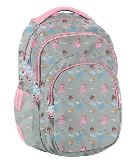 Plecak szkolny. Trzy pojemne komory, kieszeń przednia z organizerem, 2 boczne kieszenie z siatki+materiał. Wzmocnione profilowane plecy, miękkie wygodne szelki. Wzmocniony i usztywniony spód. Wygodny uchwyt do przenoszenia i uszko do powieszenia. W komorze głównej przegroda (na laptop), w drugiej komorze organizer z kieszenią na zamek, uchwyt na klucze. Elementy odblaskowe dla większego bezpieczeństwa.