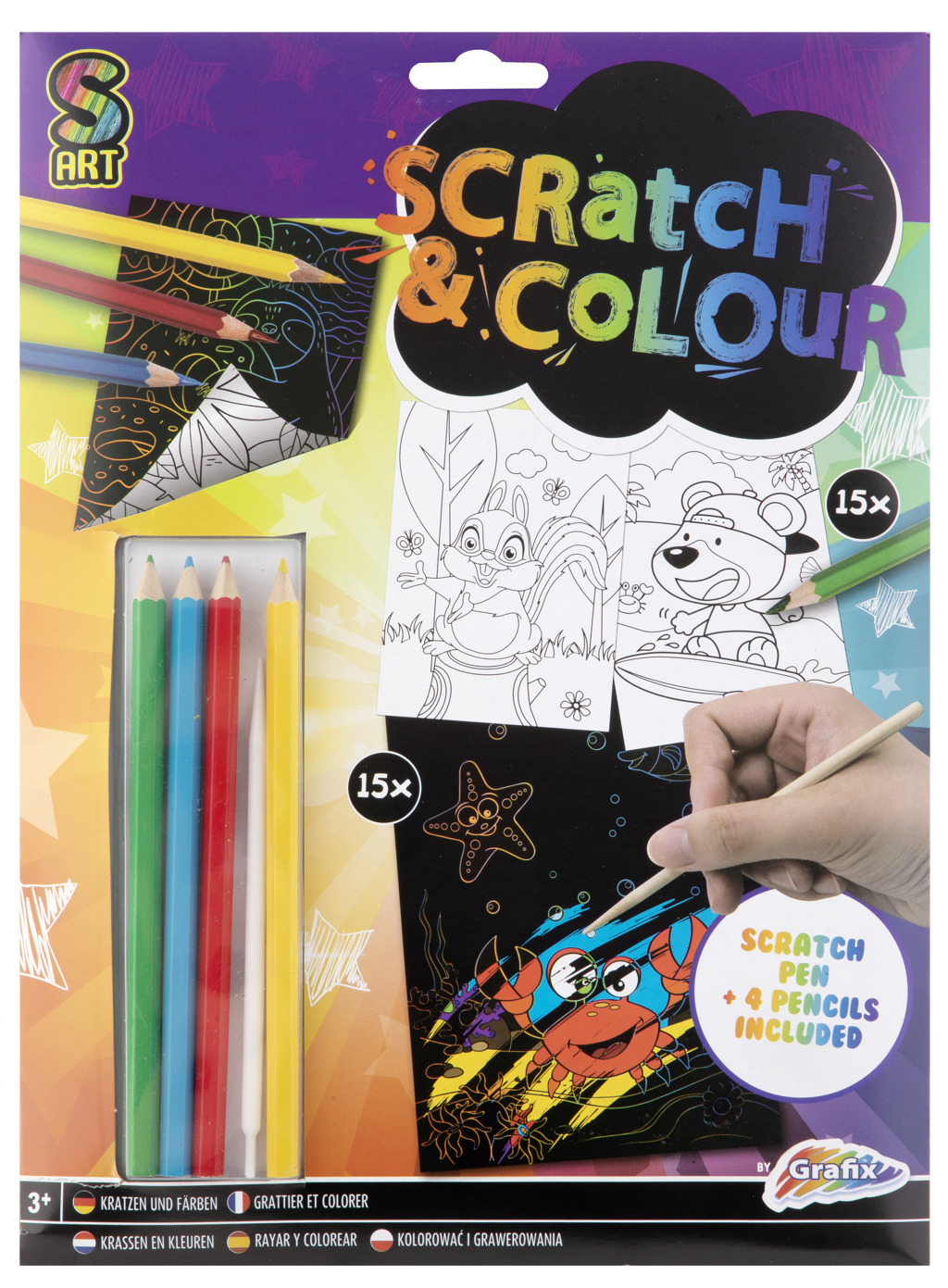 - Rozmanitá tvůrčí zábava - vyškrabávací i vymalovávací technika v jednom balení.