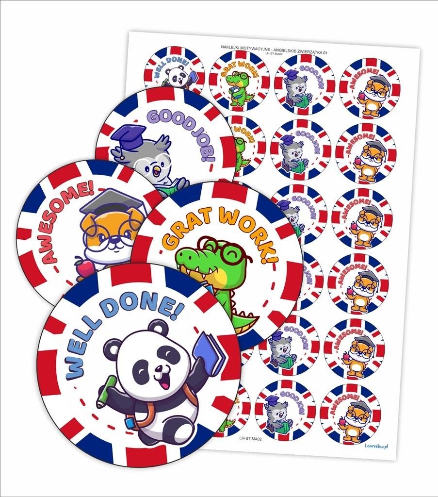 Naklejki motywacyjne - Angielskie zwierzątka 48szt