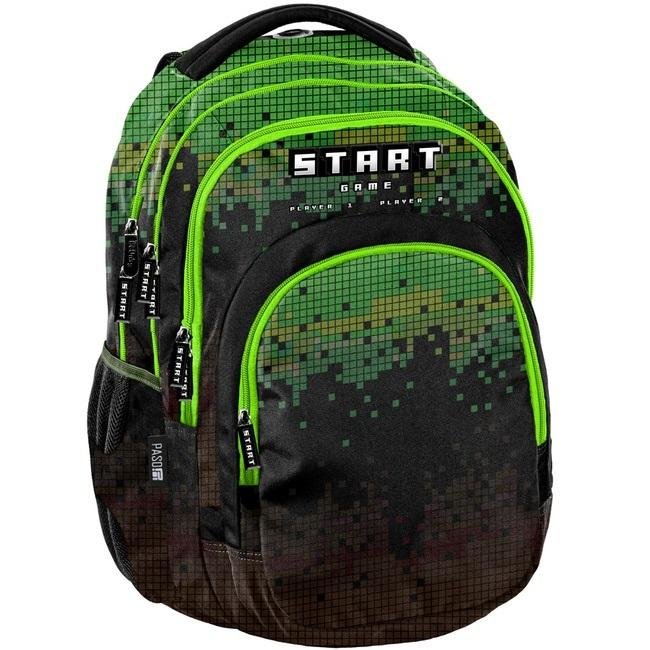 Plecak szkolny. Trzy pojemne komory, kieszeń przednia z organizerem, 2 boczne kieszenie z siatki+materiał. Wzmocnione profilowane plecy, miękkie wygodne szelki. Wzmocniony i usztywniony spód. Wygodny uchwyt do przenoszenia i uszko do powieszenia. W komorze głównej przegroda (na laptop), w drugiej komorze organizer z kieszenią na zamek, uchwyt na klucze. Elementy odblaskowe dla większego bezpieczeństwa.