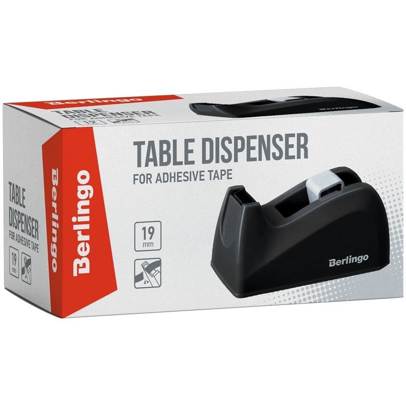 Dyspenser biurkowy do taśm samoprzylepnych o szerokości do 19 mm. Kolor obudowy czarny. Dla ułatwienia użytkowania wyposażony jest w obciążone dno i antypoślizgową podstawę. Wyposażony w metalowe ostrze do odcinania taśmy. Idealny do użytku biurowego i domowego.