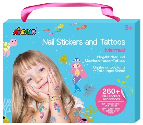 Avenir Nálepky na nehty a tetování - Mořská panna jsou skvělým způsobem, jak zpestřit dětskou zábavu a přinést radost všem malým parádnicím. S tímto bohatým balením přes 260 tetování a nálepek si vaše děti užijí hodiny kreativity a fantazie plné mořských motivů.