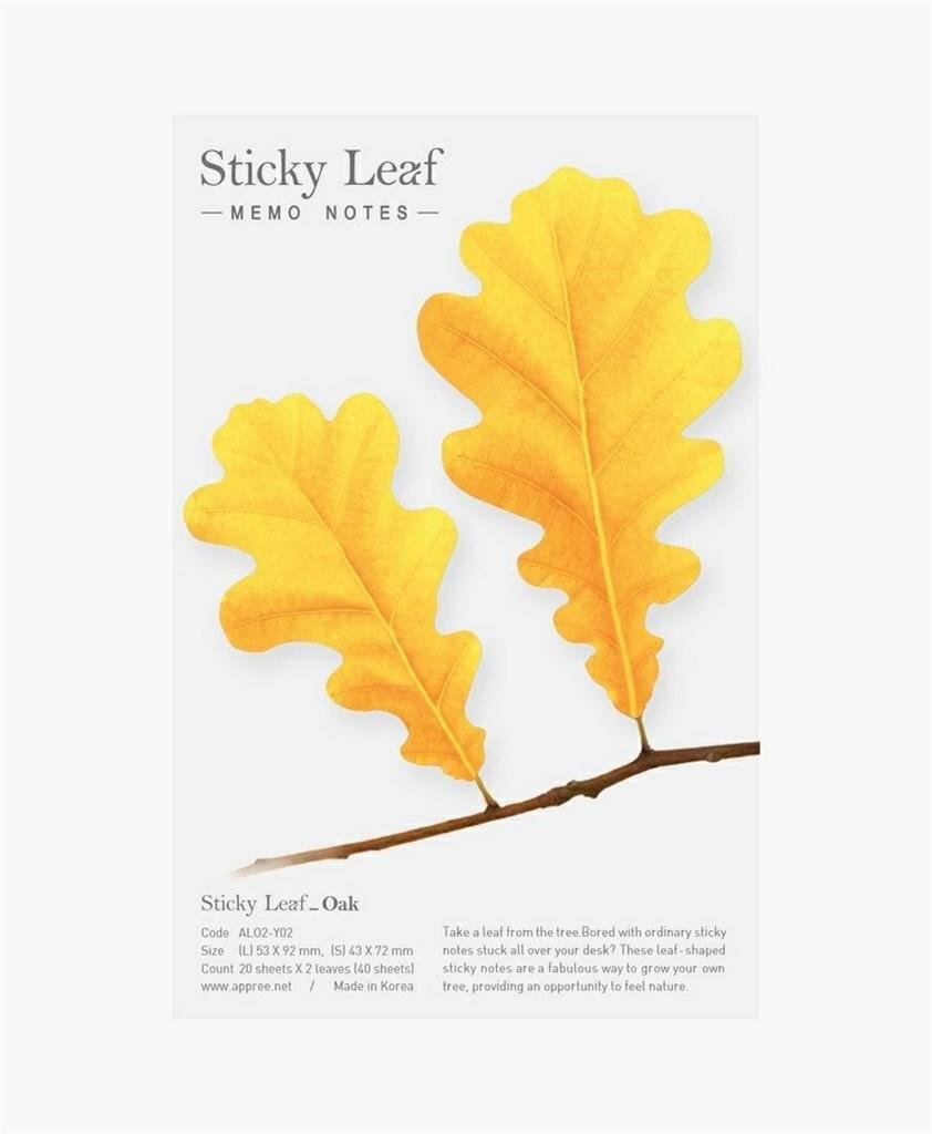 Karteczki samoprzylepne indeksujące w kształcie liści dębu. Każdy listek papieru jest samoprzylepny, dzięki temu znajdzie zastosowanie jako klasyczna kartka do notatek oraz jako zakładka indeksująca. Wykorzystasz je w domu, biurze, w planerach, książkach. W fantastyczny i kreatywny sposób można je również wykorzystać do scrappbookingu oraz bullet journalingu.