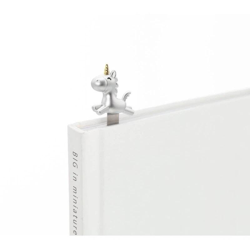 Zakładka do książki jednorożec posiada magiczną figurkę 3D przedstawiającą lecącego unicorna w kolorze srebrnym ze złotym rogiem., który jak przystało na jednorożca jest magiczny i sprawi, że każda czytelnicza podróż będzie wyjątkowa i magiczna.