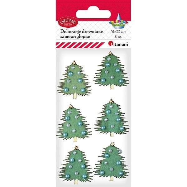 Dekoracje samoprzylepne drewniane 3D choinki 6szt