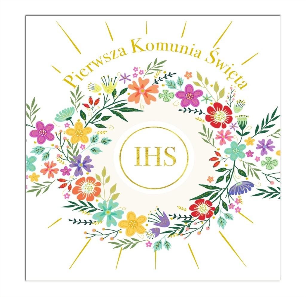 Karnet kwadratowy 15 x 15 cm. Złocony i tłoczony, teksy życzeń w środku. Wydrukowany na wysokiej jakości papierze. W zestawie koperta.