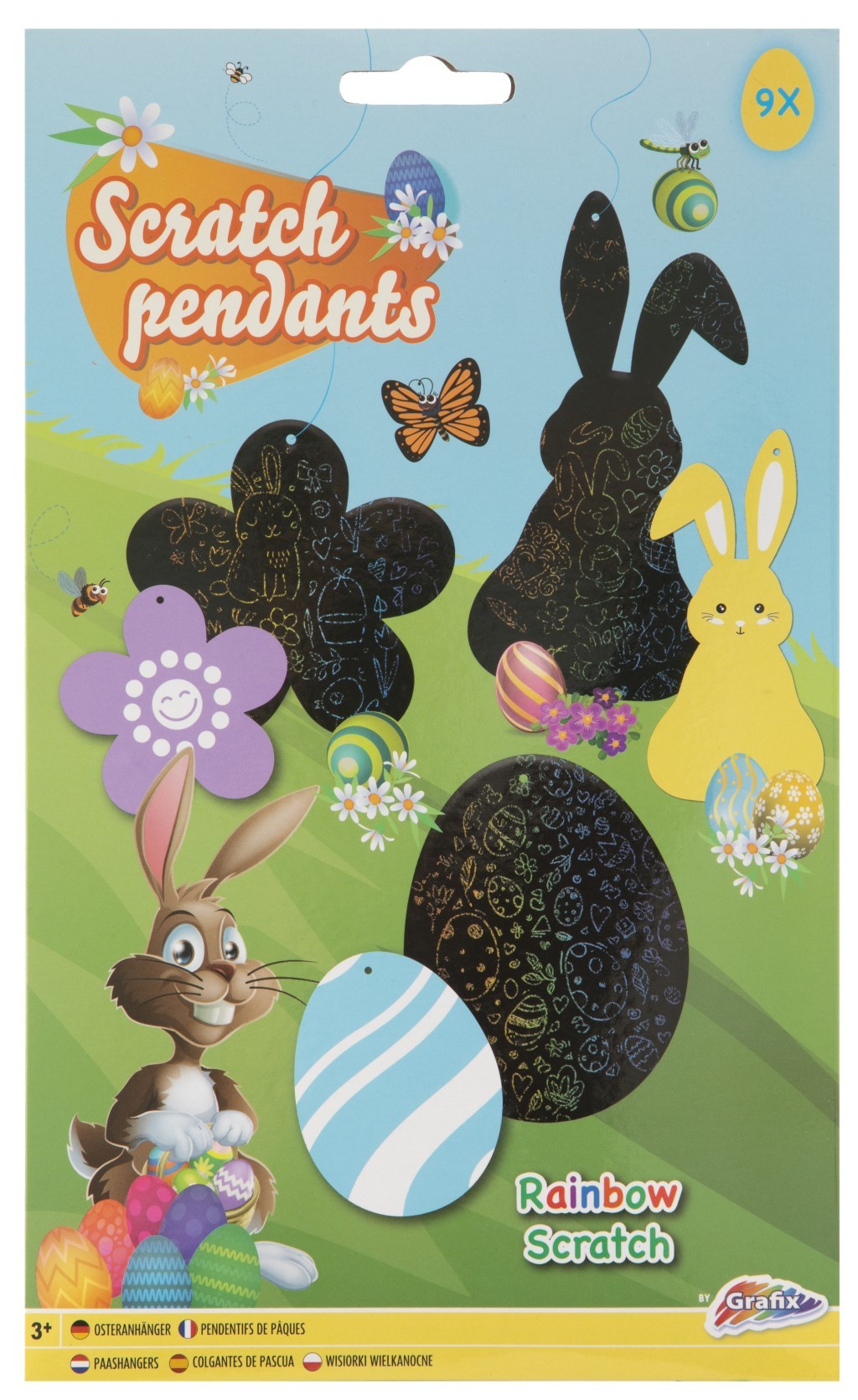 Tento set obsahuje tři vyškrabávací obrázky ve tvaru přívěsků spolu se škrabátkem, které umožní snadné odkrývání motivů. Vaše děti si tak mohou užít tvoření a zároveň rozvíjet jemnou motoriku a fantazii. Výsledné přívěsky lze použít jako dekoraci na velikonoční větvičku, na klíče nebo jako originální dárek.