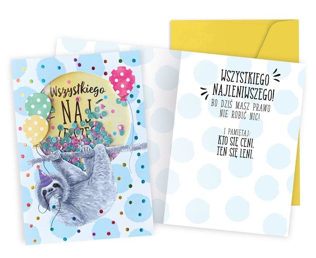 Każda kartka z serii Konfetti Kukartka w zależności od wzoru posiada element wypełniony konfetti ( brokat, złote gwiazdki, cekiny, kolorowe kuleczki). Oprócz tego, kartki z tej serii są zabawne, kolorowe na zewnątrz i w środku, mają też dodatkowe dekoracje, w zależności od wzoru: tłoczenia, kolorowe folie metaliczne, elementy biżuteryjne, wstążeczki itp. Cechy szczególne: wielkość: B6, 16.6 x 11.7 cm po złożeniu, koperta: w zestawie, kolorowa.