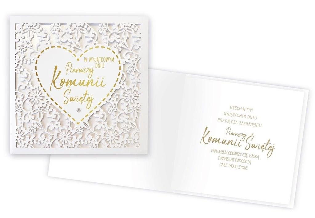 Kartki z serii Primus, to kartki najwyższej jakości, pięknie zdobione m.in złotą lub srebrną folią,tłoczeniami, czy wycinkami laserowymi. Idealne na najważniejsze okazje w życiu, takie jak ślub, komunia. W środku każdej kartki znajdują się dobrane do okazji życzenia, a do kartki dołączona jest dopasowana koperta. Cechy szczególne: wielkość: niestendardowa, prostokątna, kwadratowa, zdobienia: dekoracje ze złotej folii, doklejane koraliki, tłoczenia koperta: dopasowana w komplecie, wnętrze kartki: życzenia w środku, okazja: komunia.