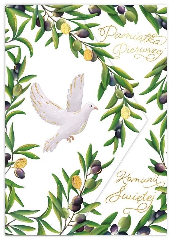 Karnet koperta A5 Komunia. Oliwki i gołąb