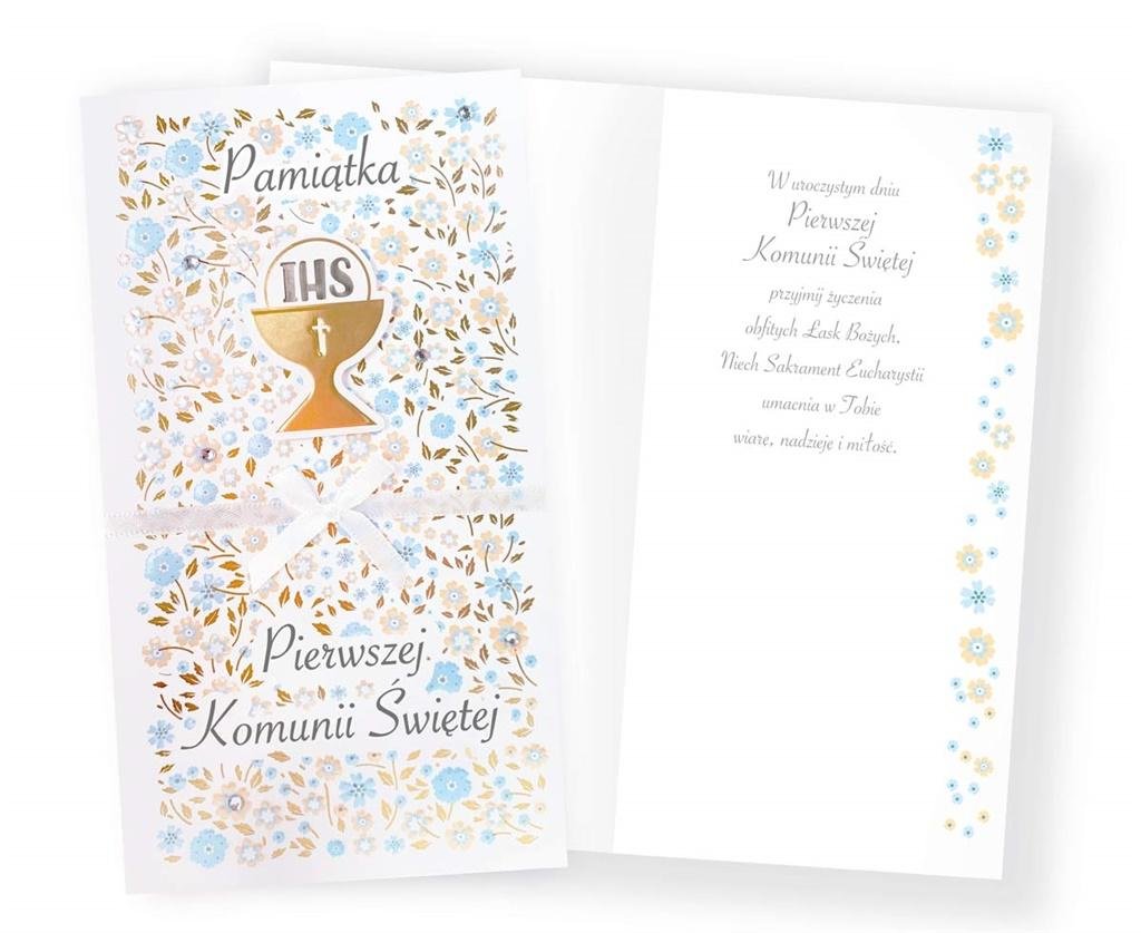 Każda kartka w kolekcji Passion Moments to małe arcydzieło - wyjątkowe i niepowtarzalne, świetne w dotyku, piękne wizualnie, po prostu niepowtarzalne. Kartki PM są bardzo bogato zdobione, a jednocześnie skromne i stylowe, cały efekt tkwi w detalach i doskonałym wykonaniu. W zależności od wzoru, na kartkach znajdują się dekoracje ze złotej, srebrnej, perłowej lub holograficznej folii, a także doklejki biżuteryjne, kokardki, brokat, laserowe wycięcia, wstążeczki i inne dodatki. Wnętrze karnetu do zawsze atrakcyjna grafika i tekst życzeń. Kartki mają w komplecie dopasowaną kopertę. Cechy szczególne: zdobienie: przynajmniej dwie folie (metaliczne/perłowe/holograficzne), brokat, elementy doklejane, wycięcia laserowe, wstążeczki - w zależności od wzoru, wnętrze: kolorowe, z delikatną grafiką, wyjątkowe życzenia w środku, w komplecie: dopasowana kolorystycznie koperta, okazja: komunia.