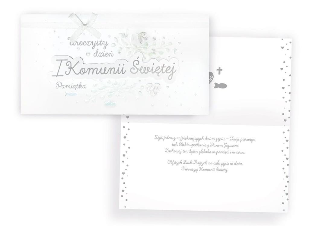 Każda kartka w kolekcji Passion Moments to małe arcydzieło - wyjątkowe i niepowtarzalne, świetne w dotyku, piękne wizualnie, po prostu niepowtarzalne. Kartki PM są bardzo bogato zdobione, a jednocześnie skromne i stylowe, cały efekt tkwi w detalach i doskonałym wykonaniu. W zależności od wzoru, na kartkach znajdują się dekoracje ze złotej, srebrnej, perłowej lub holograficznej folii, a także doklejki biżuteryjne, kokardki, brokat, laserowe wycięcia, wstążeczki i inne dodatki. Wnętrze karnetu do zawsze atrakcyjna grafika i tekst życzeń. Kartki mają w komplecie dopasowaną kopertę. Cechy szczególne: zdobienie: przynajmniej dwie folie (metaliczne/perłowe/holograficzne), brokat, elementy doklejane, wycięcia laserowe, wstążeczki - w zależności od wzoru, wnętrze: kolorowe, z delikatną grafiką, wyjątkowe życzenia w środku, w komplecie: dopasowana kolorystycznie koperta, okazja: komunia.