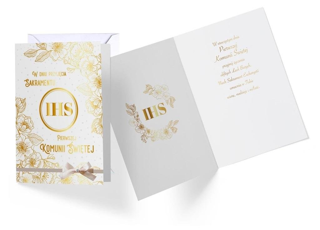 Kartka B6 z ozdobnej serii Dream Cards na Komunię - nieduża, ale robi wrażenie dzięki atrakcyjnej kolorystyce i ciekawym zdobieniom. To idealny wybór łączący przyjazną cenę z jakością. Cechy szczególne: wielkość: B6, 16.6 x 11.7 cm po złożeniu, koperta: w zestawie, kolorowa, zdobienia: różnorodne, bogate (w zależności od wzoru: przyklejane dekoracje, elementy biżuteryjne, odstawniki, brokat metaliczne folie, tłoczenia itp.), okazja: Komunia