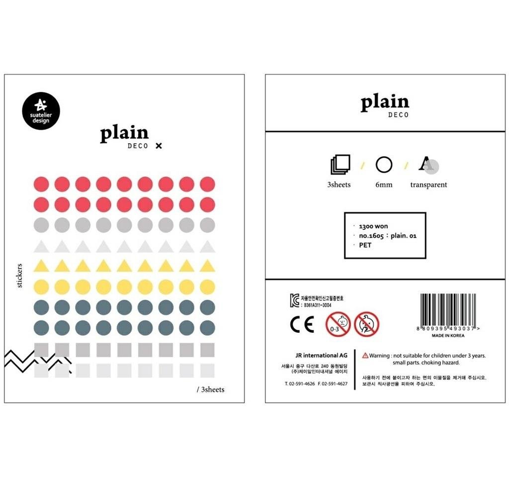 Seria Suatelier Plain to kolekcja prostych i eleganckich naklejek, idealnie nadających się do ozdabiania notesów, kalendarzy, telefonów czy innych przedmiotów. Rewelacyjnie sprawdzą się również jako znaczniki lub naklejki motywacyjne. Te naklejki pozwalają na dodanie subtelnego akcentu do Twojego stylu i są dostępne w różnych kolorach i rozmiarach. Naklejki wykonane z transparentnego tworzywa PET. Wymiar arkusza 9,5x13 cm."