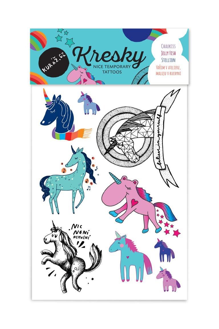 Tato kolekce dočasných tetování Jednorožci vznikla ve spolupráci s prodejnou Kuráž a přináší svěží a kreativní ilustrace od talentovaných autorů Chaukiss, Jellyfish, Stellion, Vařím v atelieru, maluju v kuchyni a Kataríny Ilkovičové. Každý motiv je pečlivě navržený tak, aby vyjadřoval krásu, hravost a kouzlo světa jednorožců - symbolů, které připomínají, že pro každého z nás platí: nic není nemožné.