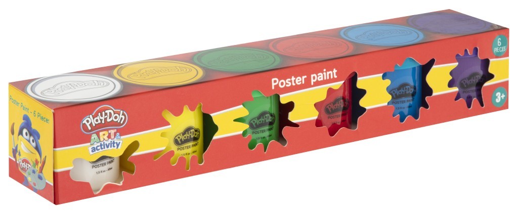 Tempery v kelímku 6 × 45 ml Play-Doh. 6 barev - bílá,žlutá, červená,zelená, modrá a fialová. číst celé