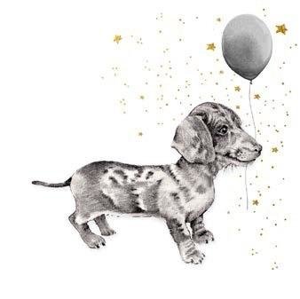Karnet Złocony kwadrat CL3815_BL Piesek z balonem
