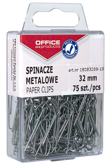 Kancelářské spony kovové. Rozměr 32 mm. Balení: 75 ks v blistru s praktickým zavěšením na hák.