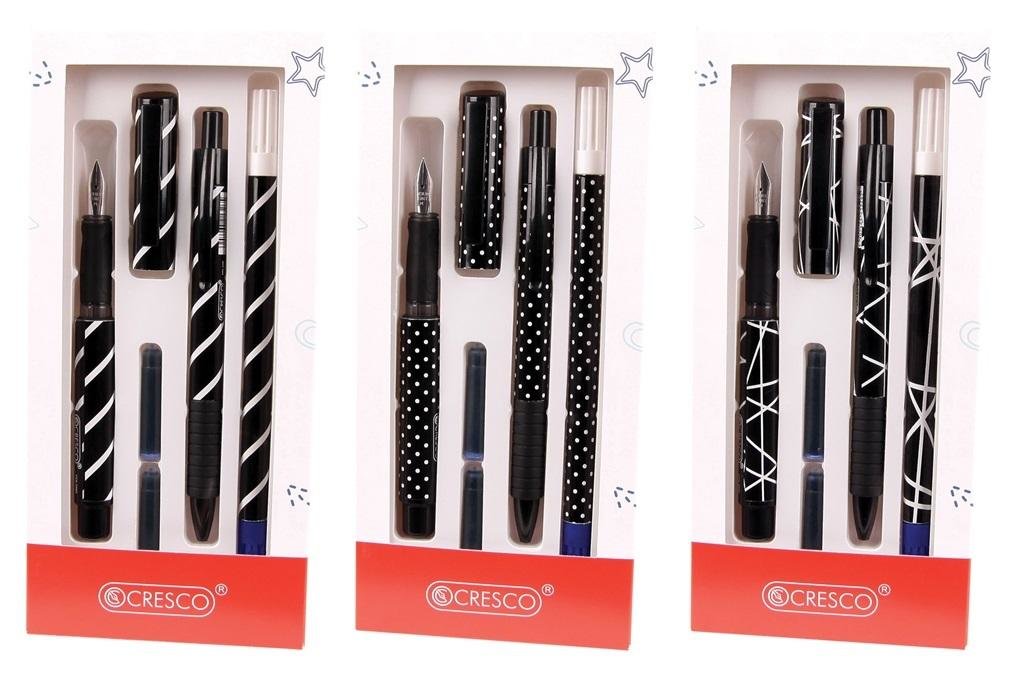 Zestaw piśmienniczy z serii GO PEN zawierający pióro + długopis + wymazywacz z korektorem oraz 2 naboje. Całość zapakowane w estetyczne etui.