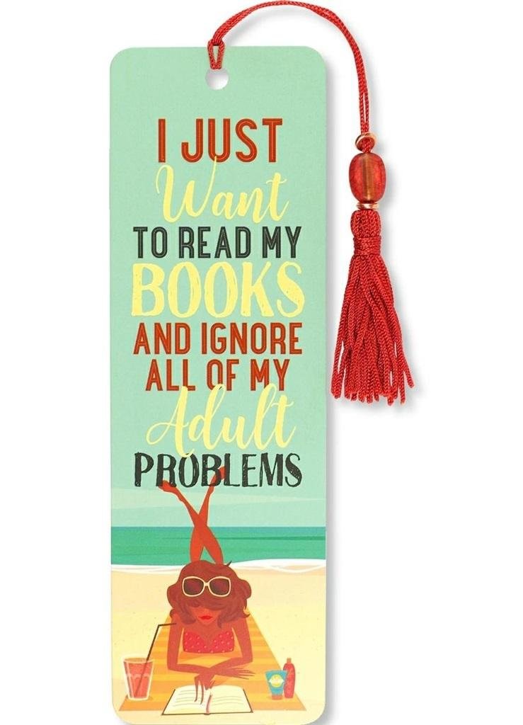 Zakładka do książki firmy Peter Pauper Press - Chcę czytać (Just Want to Read). "Chcę tylko czytać moje książki i ignorować wszystkie moje dorosłe problemy". Zakładka ma dopasowaną kolorystycznie wstążkę z frędzlem oraz koralik. Barwne, trwałe, zabawne lub motywujące nadruki sprawią, że czytanie...