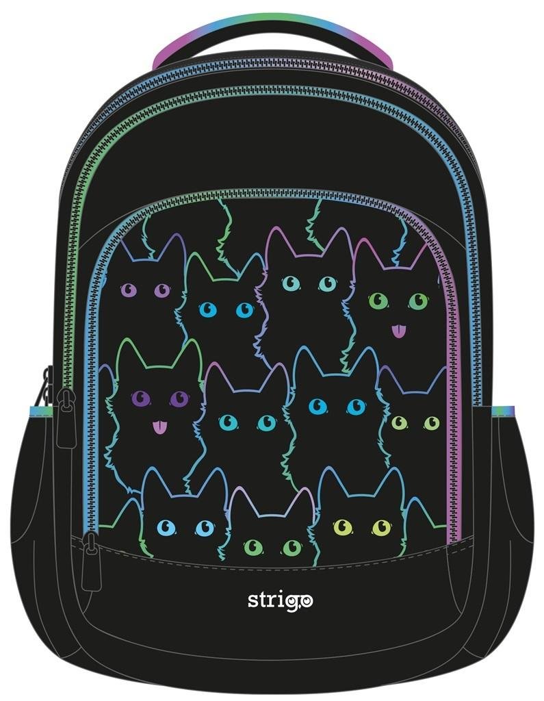 Plecak ma wzmocnione, wyprofilowane i oddychające plecy, dzięki którym uczeń nie odczuwa noszenia nawet najcięższych książek. Wyściełane, wygodne szelki w plecaku są regulowane. Plecak posiada także regulowany pas piersiowy, który sprawia, że ciężar plecaka jest równomiernie rozłożony. Dodatkowym atutem są boczne, poręczne kieszenie na butelkę lub bidon.