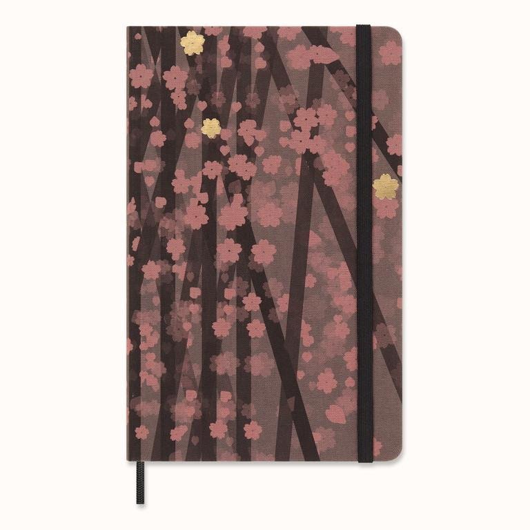 Velký linkovaný zápisník z limitované edice Sakura. Předsádka zápisníku je tematicky vyzdobena japonským módním návrhářem Kosuke Tsumura. Zápisník má pevnou, ve hřbetu šitou vazbu v kartonových deskách potažených látkou. Obepíná ho pružná páska proti samovolnému otevírání. Je vybaven praktickou vnitřní kapsou, která je vyrobena z tkaniny a kartonu, a textilní záložkou s letákem s historií Moleskine. Součástí zápisníku jsou samolepky a přáníčko. Papír s gramáží 100 g/m2 je vyroben z papíru zodpovědně získaného ze šetrného lesního hospodaření.