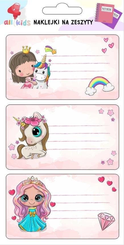 Naklejki na zeszyty Księżniczki jednorożce (6 szt)