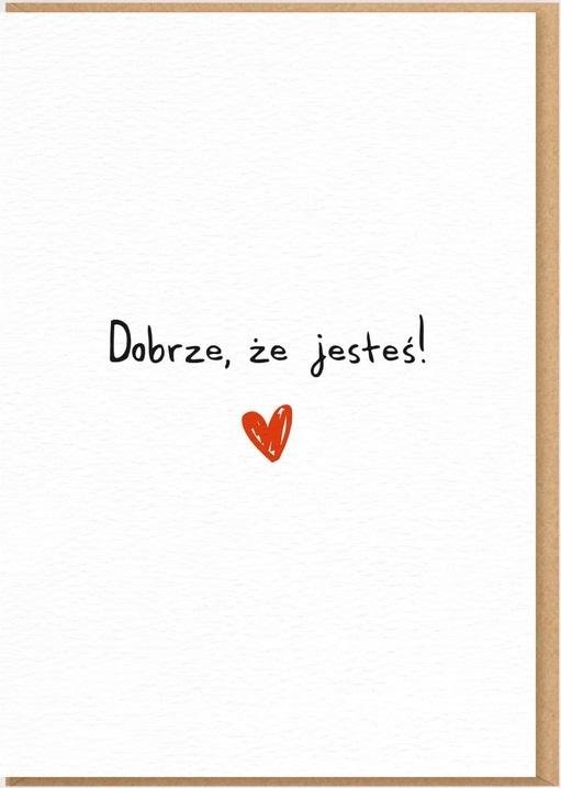 Kartka okolicznościowa DOBRZE, ŻE JESTEŚ to idealny pomysł na prezent dla przyjaciela, członka rodziny lub narzeczonego. Sprawdzi się zarówno jako kartka na Dzień Mamy, jak i kartka walentynkowa. Podziękuj ważnej osobie za jej kojącą obecność!