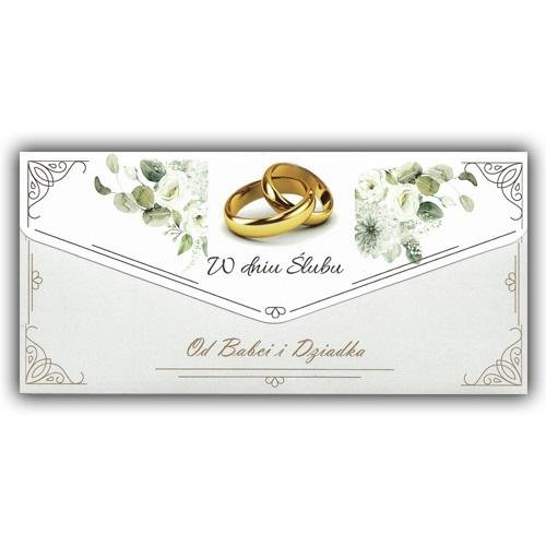 Po złożeniu format kartki DL, wyjątkowe złocenia, w środku życzenia i kieszonka na pieniądze. Dodatkowa koperta