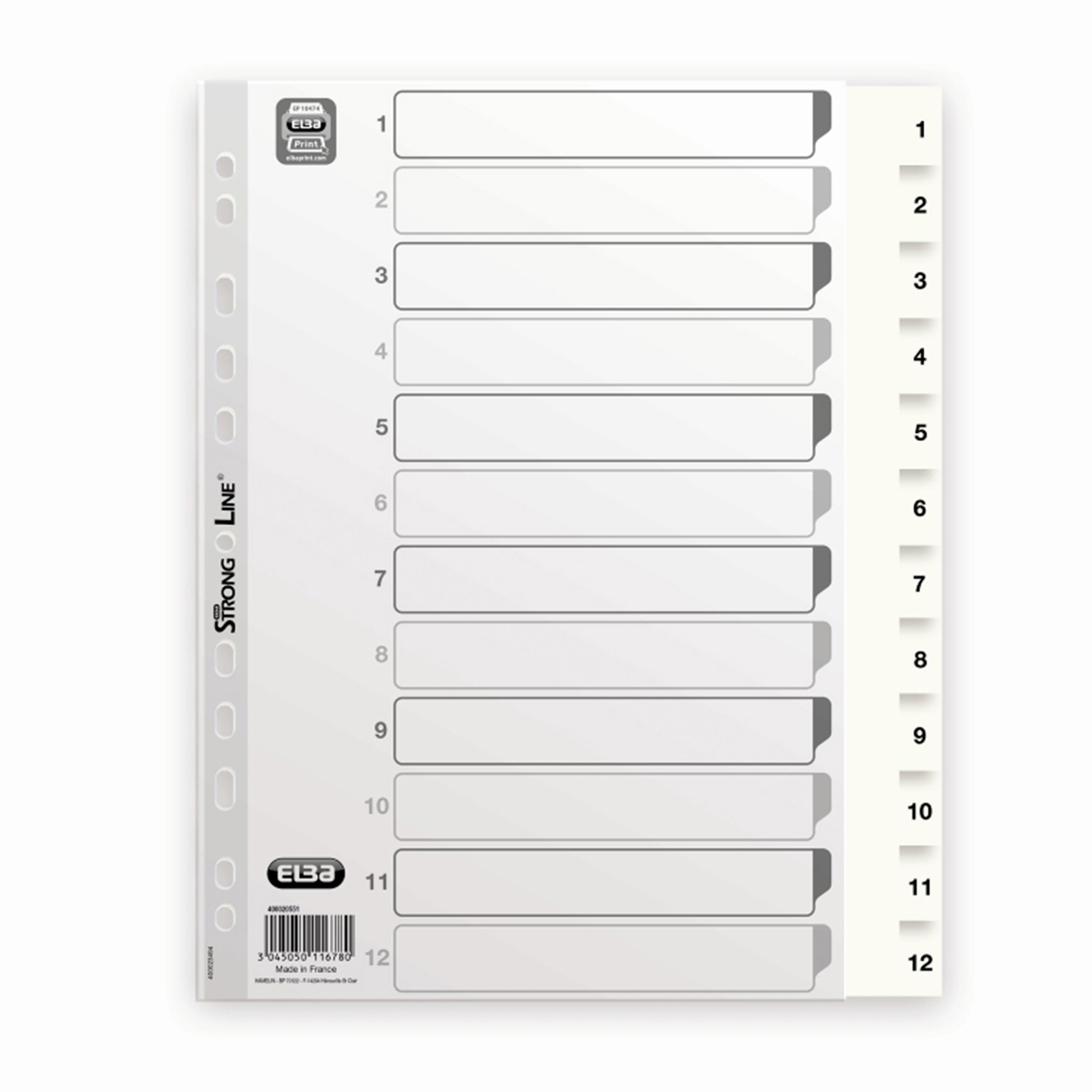 Elba, Rejstřík Strongline, PP, A4+, 1-12, bílá