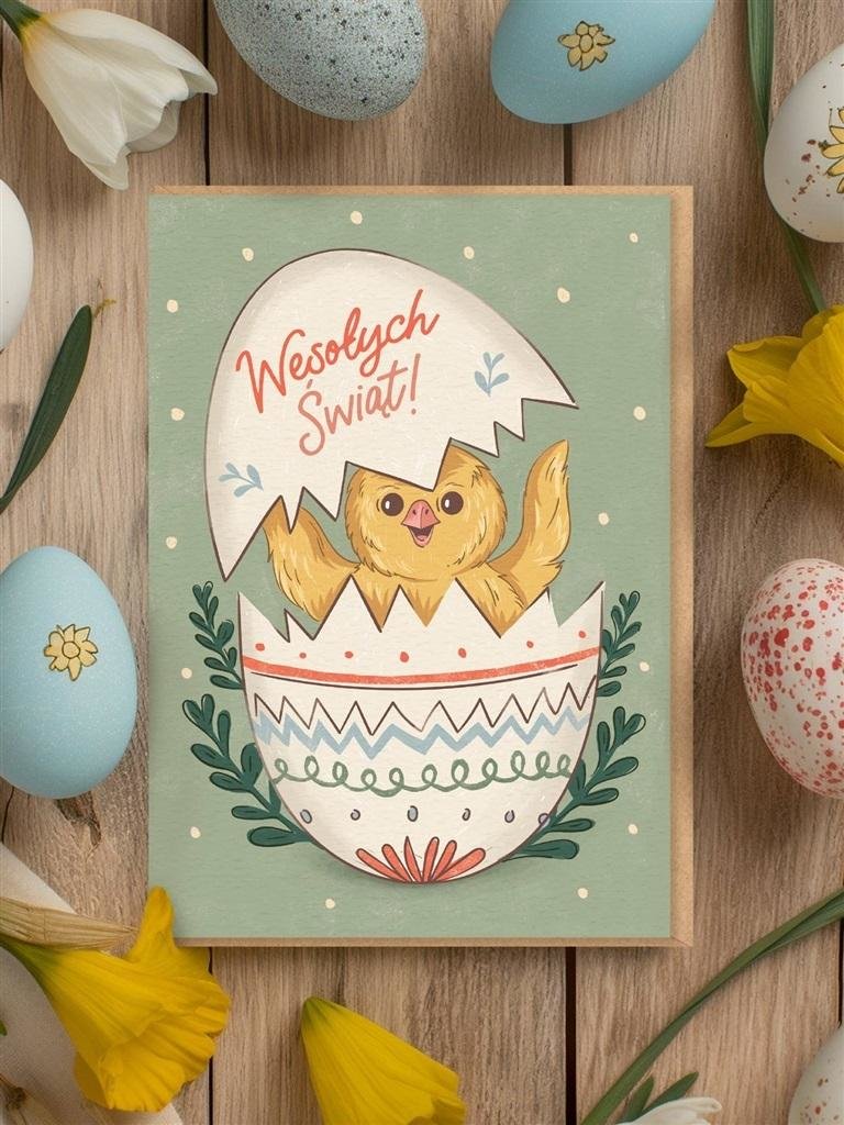 O kurczę Wesołych Świąt! Dobrze wiemy, że kartka wielkanocna musi być z jajem. Tak naprawdę to od niego wszystko się zaczęło. Jajko jest symbolem życia, a kurczak oznacza początek. Jako specjaliści w kategorii "prezent na święta" wiemy, jak dobrze je rozpocząć i czym najlepiej obdarować bliskich. Połączyliśmy humor i tradycję, a efektem jest kartka wielkanocna z uroczą grafiką. To wyjątkowy prezent świąteczny lub dodatek do prezentu dla babci, mamy oraz każdej bliskiej osoby. Taki upominek to skarb, bo kartka z życzeniami nie tylko przekazuje intencje, ale również buduje wspomnienia! Co będzie pierwsze, jajko czy kartka? Wszystko zależy od Ciebie. Wielkanoc tuż, tuż. Idealny prezent na Wielkanoc. Kartka okolicznościowa na Wielkanoc O KURCZĘ WESOŁYCH ŚWIĄT Wymiary kartki (po złożeniu): 12 cm x 17 cm Gramatura papieru: 250 g/m2 W zestawie elegancka koperta z eko kraftu Wymiary koperty: 12,5 cm x 17,5 cm Gramatura koperty: 100 g/m2 Zestaw zapakowany w folię Idealna kartka na Wielkanoc Wyprodukowano w Polsce
