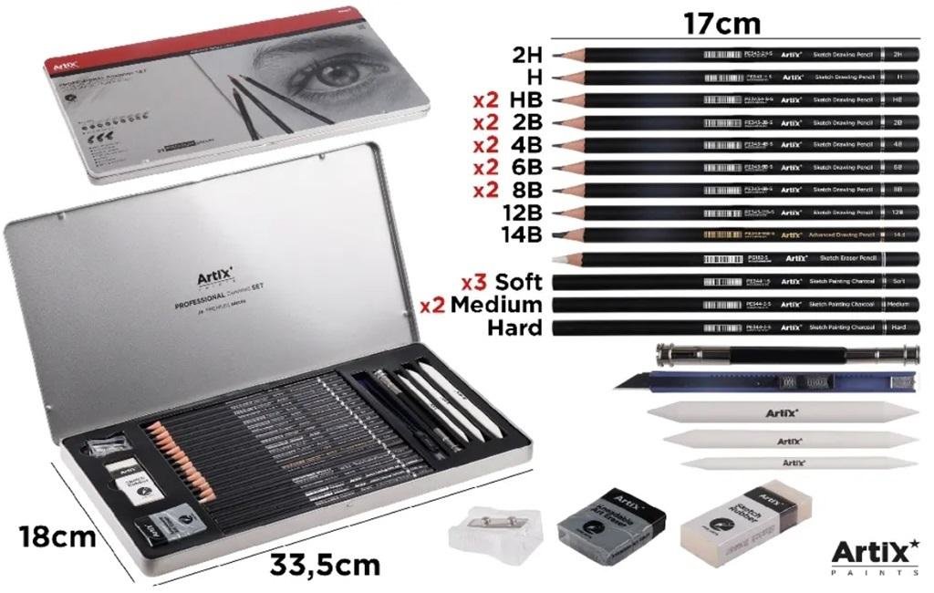 Uvolněte svou kreativitu s profesionálním skicovacím setem! Tento komplexní set je ideální volbou pro všechny, kdo chtějí začít nebo rozvíjet své umělecké dovednosti a tvořit s lehkostí a přesností.