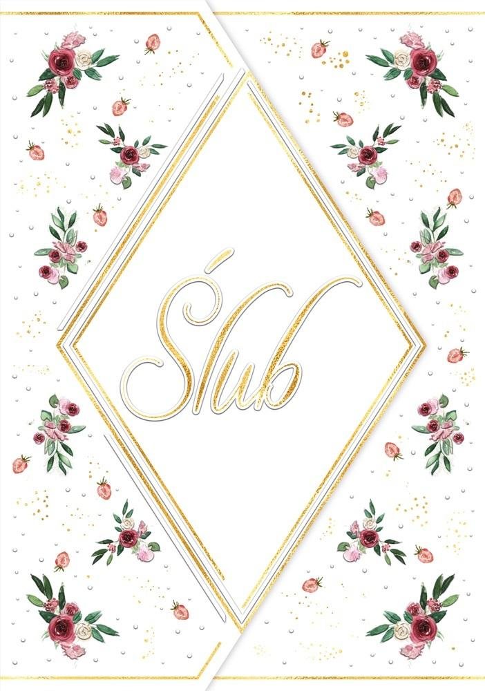 Karnet A5 ślub Róże z tortu