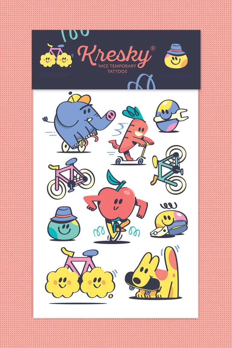 Tato kreativní sada tetování je navržena ve spolupráci s Cyklo WERKSTATT a ilustrovaná talentovaným Janem Strelecem. Najdete zde veselá zvířátka a postavičky na různých kolových dopravních prostředcích - jablko na jednokolce, slon na kole, mrkev na koloběžce a skateboard, který zaujal psa. Tetování jsou včetně bílé barvy, což zaručuje jejich výraznost na kůži.