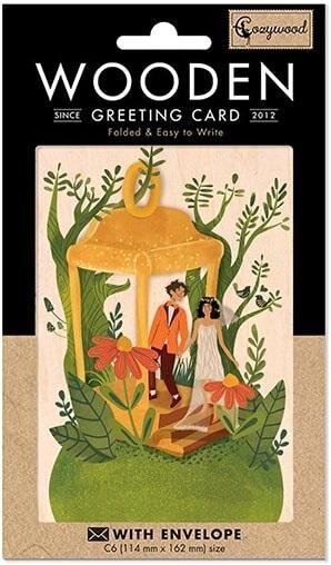 Drewniany karnet w formacie C6 z kopertą. W środku nie zawiera tekstu. Ten karnet jest w 100% biodegradowalny, wykonany przy użyciu minimalnego nakładu energii, gazu i wody. Jego wytworzenie zużywa 5 razy mniej drewna niż wykonanie karnetu papierowego. Wyprodukowany na Litwie. číst celé