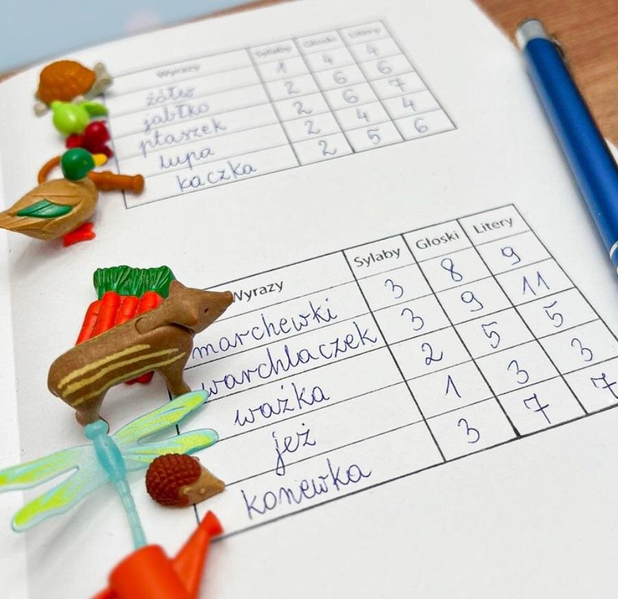 Do nauki, ćwiczenia i doskonalenia podziału słów na głoski litery i sylaby.