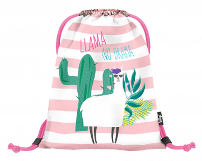 • Sáček na cvičky nebo přezůvky z pevného omyvatelného materiálu. • Zdrhování pomocí pevných tkanic, které zároveň umožňují nošení na zádech.