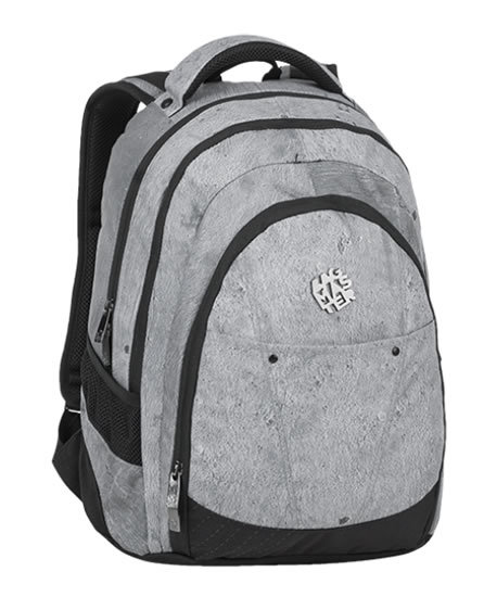 Hlavní komora je velmi prostorná vhodná na školní desky, tak na učebnice. Součástí hlavní komory je polstrovaná kapsa na notebook do 15 Přepásaná popruhem na suchý zip k fixaci notebooku. Rozměry kapsy na notebook 29 x 28 x 4 cm. Na zádech batohu je kapsa na zip, která skrývá polstrovanou kapsičku na MP3 přehrávač s vývodem na sluchátka v horní části. Rozměry kapsičky na MP3 přehrávač (12 x 14 x 2 cm). V této speciální skryté kapse jsou 2 síťované kapsičky na zip. A uvnitř je ještě popruh na suchý zip např. k provlečení sluchátek nebo k zavěšení klíčů apod. Do této kapsy je možné vložit sešit A4. Prostřední komora je vhodná pro formát A4, tedy např. pro sešity, dokumentaci, apod. Černá síťovaná kapsa na zip, o rozměrech 25 x 14,5 cm. Tato prostřední komora je velmi prostorná a dostatečně hluboká. Lze rovněž použít pro školní desky nebo sešity o velikosti A4. Uvnitř přední komory - je přehledný organizér, s jednou síťovanou kapsou na zip, jednou větší a jednou menší kapičkou. Na přední komoře je rovněž jedna kapsa na suchý zip. Dvě boční kapsy na gumu, vhodné na láhev. Ramenní popruhy jsou anatomicky tvarované a měkce polstrované. Popruhy je možné individuálně nastavit. Batoh je možné fixovat na ramenou pomocí flexibilní hrudní pásky. Dno batohu je polstrované. Batoh můžete zavěsit pomocí poutka. Držadlo je polstrované a dobře padne do ruky.