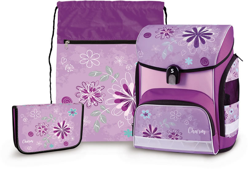 Školní set obsahující aktovku, jednopatrový penál, sáček na cvičky číst celé