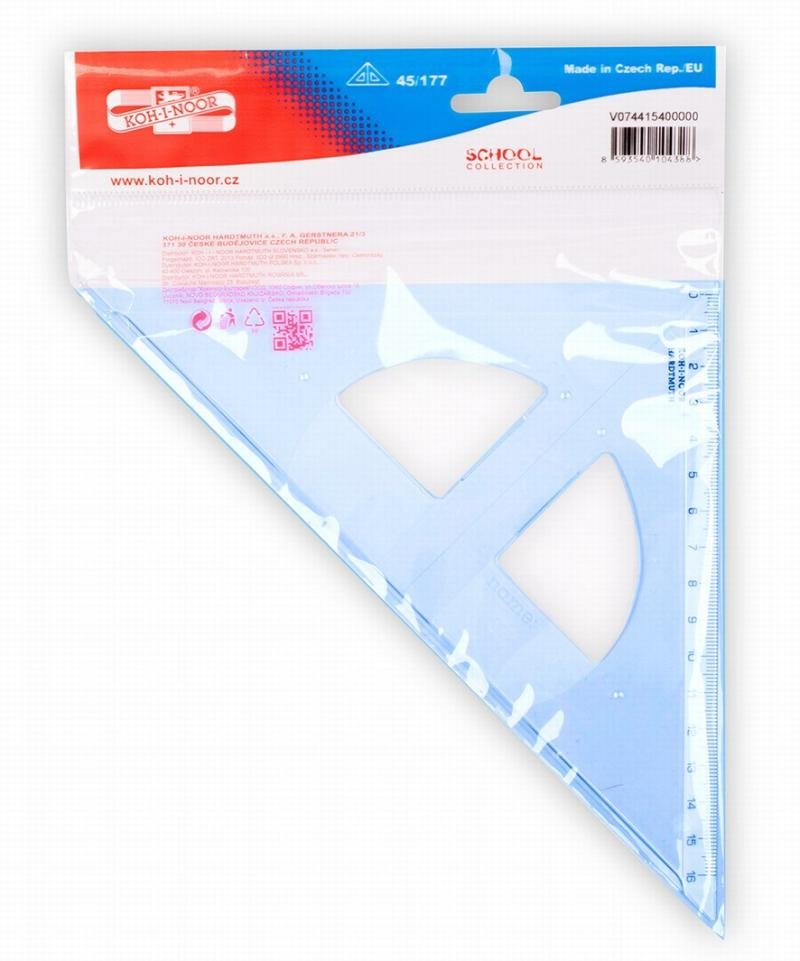 Objevte preciznost a praktičnost trojúhelníku Koh-i-noor! Tento modrý průhledný trojúhelník s kolmicí je ideálním pomocníkem pro přesné rýsování a technické kreslení.