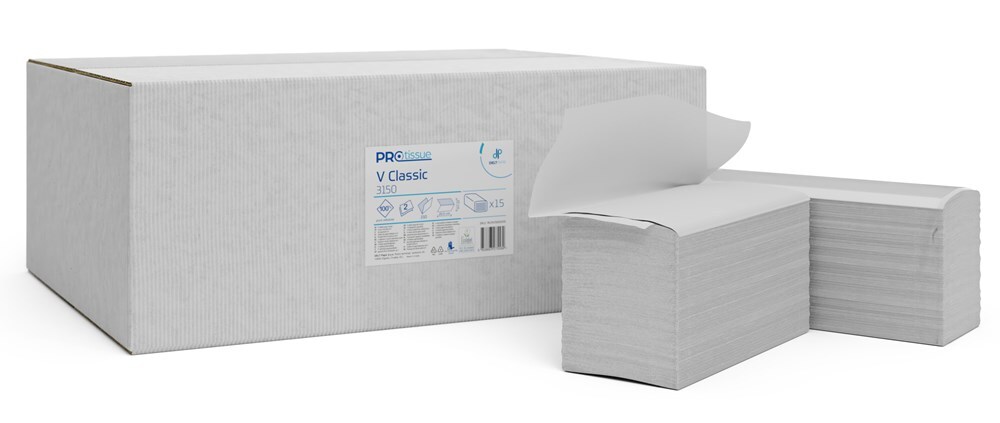 Ručníky skládané V Classic Protissue, 2 vr., celulóza, bílé, 3150 ks
