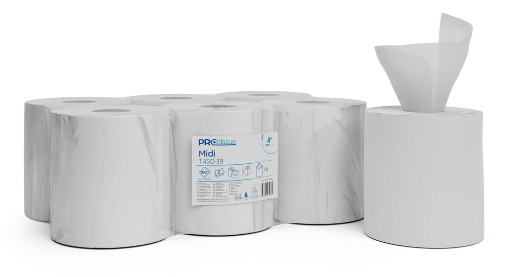 Ručníky v roli Centrefeed Protissue, Midi, 2 vr., bílé, 90 m, 6 ks